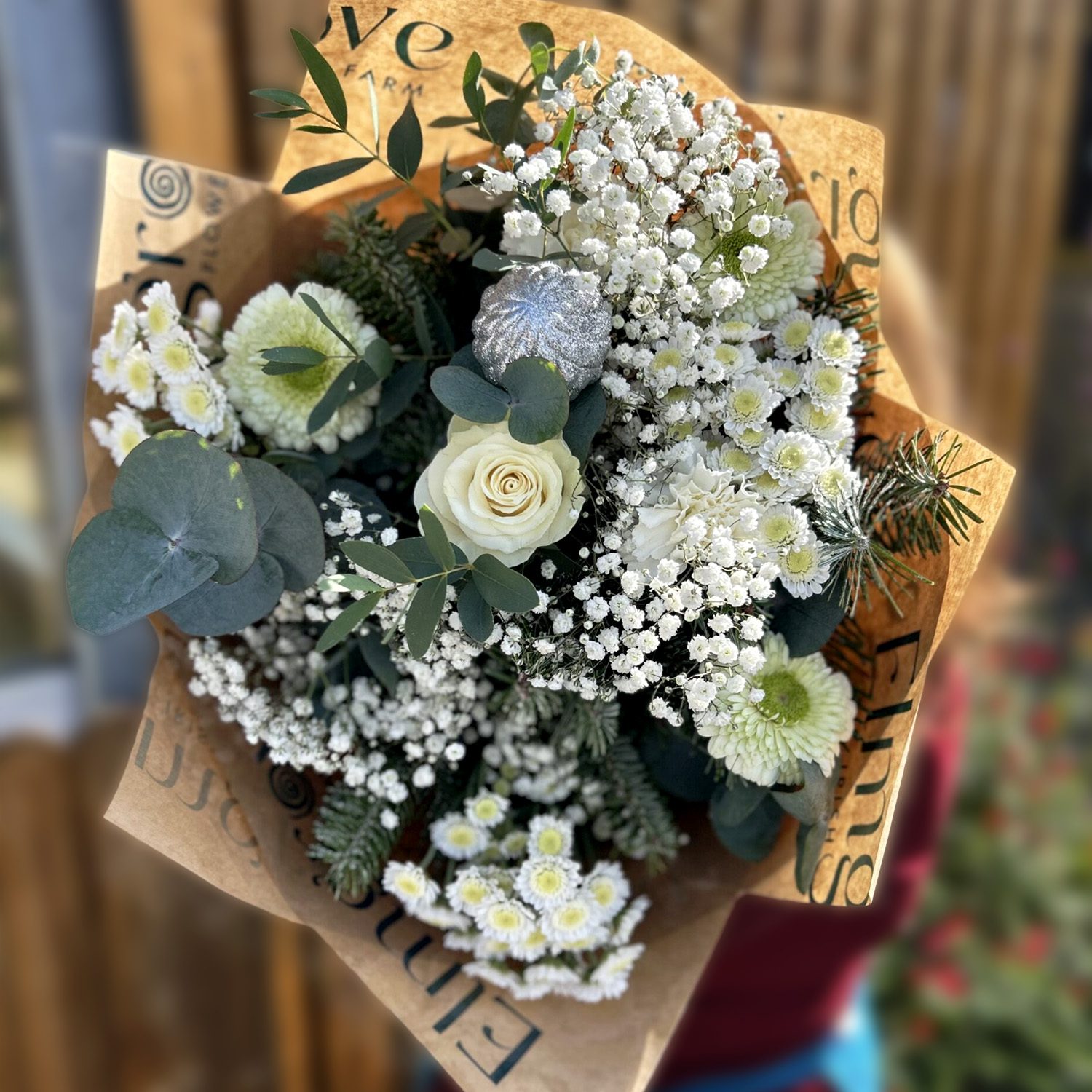 Want to send someone a snowy sprinkle of Christmas magic? This bright and beautiful bunch of seasonal white blooms is the perfect way to say “Merry Christmas!” – no wrapping paper required.